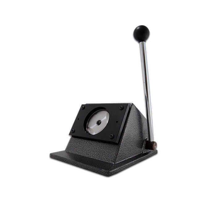 Buton rozet imalatı için kullanılan ve baskılı kağıt üzerinde dairesel kesimler yapan giyotin sistemidir. Buton rozet imalatı, kağıda rozet yapılması hedeflenen görsellerin baskısı ile başlar. Kağıt üzerine yapılacak baskılar için kullanılacak görseller imal edilecek 56 mm rozete göre biraz daha büyük yaklaşık olarak 66 mm ebatında hazırlanır. Bunun sebebi buton rozetin imalatı esnasında kağıdın bitişinin rozetin arka kısmına kadar kıvrılması gerekliliğidir. Görsel buton rozetin şekline uygun olarak daire şeklinde hazırlanır. Farklı ebatlarda rozetler için farklı kesim bıçakları kullanılır.