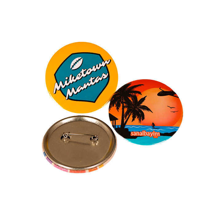 58 mm rozetler, farklı amaçlar için kullanabileceğiniz ve çeşitli şekillerde tasarlanabilen popüler ve son derece ekonomik bir metal aksesuardır. 58mm rozet, genellikle bir parti veya şirket logosu, özel tasarım grafikleri veya popüler slogan tarzı bir metni göstermek üzere tasarlayabileceğiniz bir üründür. Arka kısmında bulunan iğneli klipsle elbise, şapka veya çanta üzerine tutturulabilir.