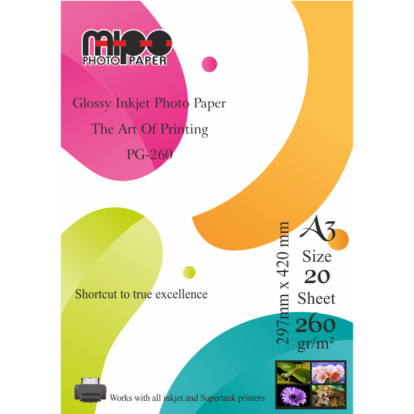 Mipo 260GLS parlak, klasik bir inkjet fotoğraf kağıdıdır. İnkjet yazıcılarda mürekkep püskürtme yolu ile fotoğraf baskısı için geliştirilmiş bu kağıdın özel yüzeyinde özellikle fotoğraf uygulamaları için tasarlanmış, mikro gözenekli özel bir kaplama mevcuttur. Mikro gözenekli bu katman inkjet fotoğraf kağıdı için kullanılan en üstün kaplamadır. Kaplama, silika veya alümina bazlı mikro gözeneklere sahiptir. Bu kaplamanın, gözeneklerinden dolayı her türlü mürekkep, boya ve pigment kağıt yüzeyinde mükemmel bir şekilde tutunur. İşte bu özel kaplama ve kaliteli taban kağıdı sayesinde fotoğraflarınızı mükemmel bir şekilde basabilirsiniz.