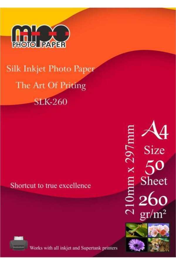 Mipo 260SLK ipek mat, klasik bir inkjet fotoğraf kağıdıdır. İnkjet yazıcılarda mürekkep püskürtme yolu ile fotoğraf baskısı için geliştirilmiş bu kağıdın özel yüzeyinde özellikle fotoğraf uygulamaları için tasarlanmış, mikro gözenekli özel bir kaplama mevcuttur. Mikro gözenekli bu katman inkjet fotoğraf kağıdı için kullanılan en üstün kaplamadır. Kaplama, silika veya alümina bazlı mikro gözeneklere sahiptir. Bu kaplamanın, gözeneklerinden dolayı her türlü mürekkep, boya ve pigment kağıt yüzeyinde mükemmel bir şekilde tutunur. İşte bu özel kaplama ve kaliteli taban kağıdı sayesinde fotoğraflarınızı mükemmel bir şekilde basabilirsiniz.