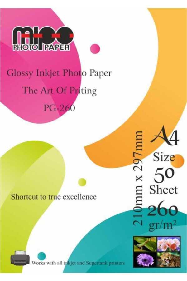 Mipo 260GLS parlak, klasik bir inkjet fotoğraf kağıdıdır. İnkjet yazıcılarda mürekkep püskürtme yolu ile fotoğraf baskısı için geliştirilmiş bu kağıdın özel yüzeyinde özellikle fotoğraf uygulamaları için tasarlanmış, mikro gözenekli özel bir kaplama mevcuttur. Mikro gözenekli bu katman inkjet fotoğraf kağıdı için kullanılan en üstün kaplamadır. Kaplama, silika veya alümina bazlı mikro gözeneklere sahiptir. Bu kaplamanın, gözeneklerinden dolayı her türlü mürekkep, boya ve pigment kağıt yüzeyinde mükemmel bir şekilde tutunur. İşte bu özel kaplama ve kaliteli taban kağıdı sayesinde fotoğraflarınızı mükemmel bir şekilde basabilirsiniz.