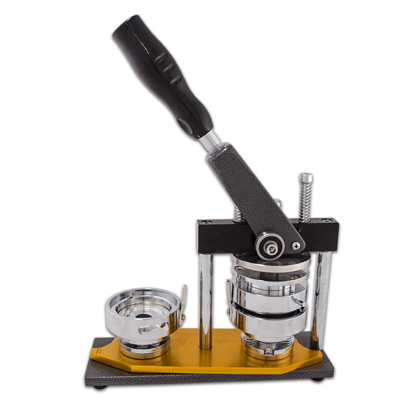 Önce A kalıbı içerisine malzemeler yerleştirildikten sonra üst kalıbın altına itilir ve baskı kolu aşağı yönde bastırılarak kalıp içindeki malzemenin üst kalıba sıkışması sağlanır. Bu ilk baskı sonrası A kalıbı içerisinde malzeme kalmamalıdır. Daha sonra içerisine arka kapak yerleştirilen B kalıbı üst kalıp altında konumlandırılır ve baskı yapılır. Kol kalktığında bitmiş buton rozeti B kalıbı üzerinde göreceksiniz.
