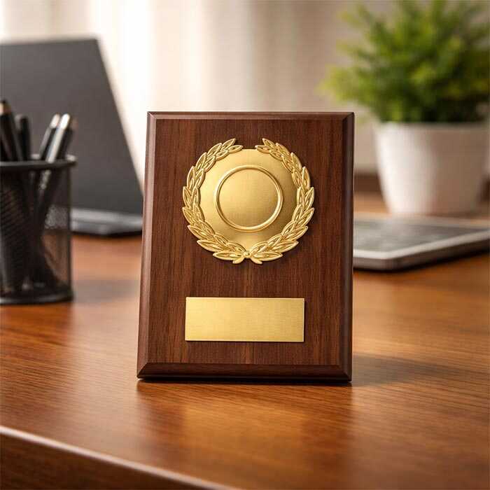Metalize kaplamalı parlak altın yüzeyi sayesinde ışığı yansıtarak plaket yüzeyinde dikkat çekici bir odak noktası oluşturur. Plastik malzemeden üretilmiş olması ise ürünü hem hafif hem de dayanıklı hale getirir.