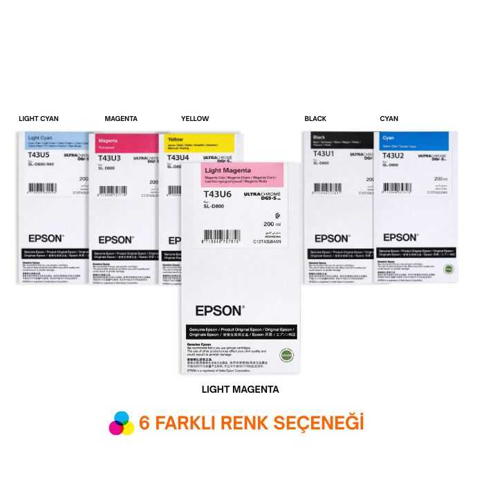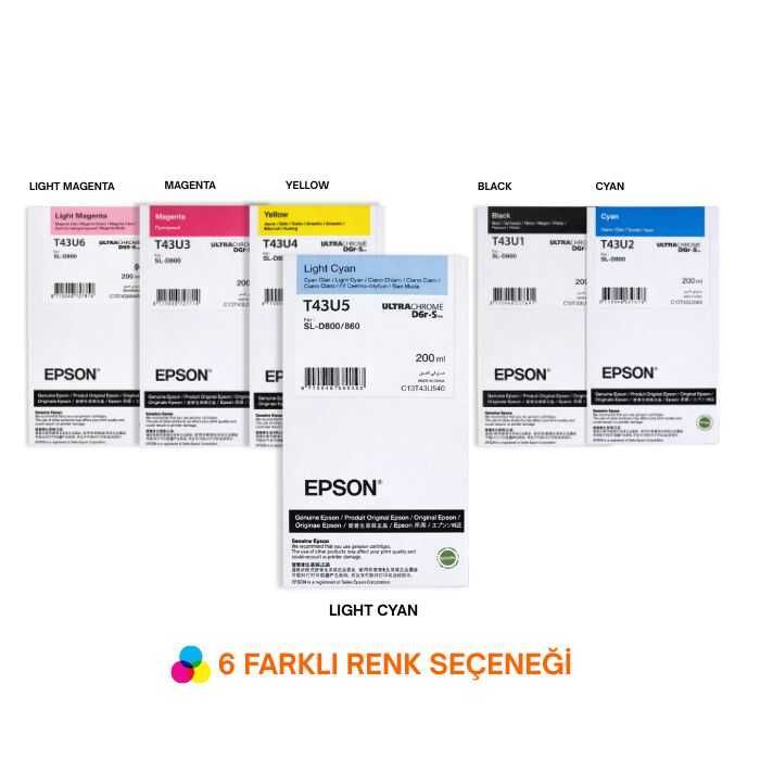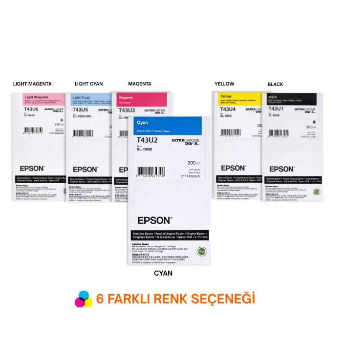 Epson SureLab SL-D800 Yazıcı için T43U Serisi Orijinal Fotoğraf Mürekkebi (Black / Cyan / Magenta / Yellow / Light Cyan / Light Magenta)