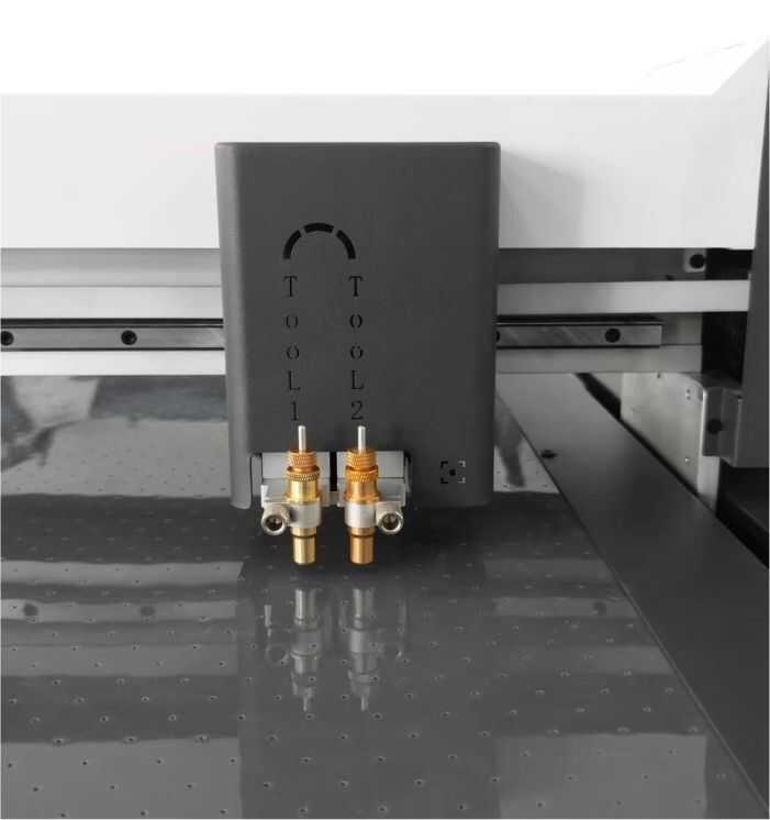 ü Çift kafa, (1) Biri kesme, diğeri katlama için (2) CCD kamera çeşitli malzemeleri doğru bir şekilde tanımlar. Malzemelerden daha etkili bir şekilde tasarruf etmek için konumlandırma çizgisini otomatik olarak yakalayın ve kağıt sapmasını 0,5 mm kenar boşluğuna düzeltin. | ![]() |