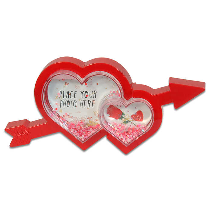 Fotoğraflı Kar Küresi Aşk Oklu İkili Kalp 7446-7