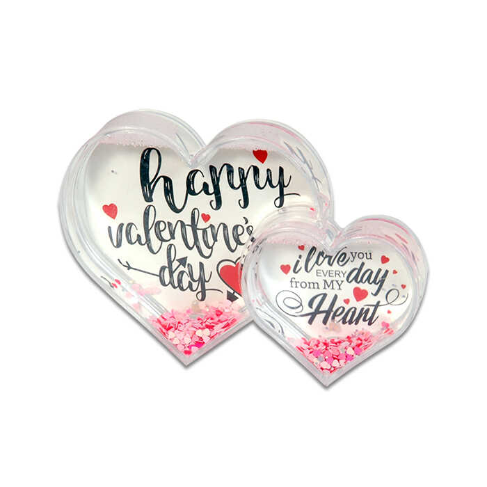 Fotoğraflı Kar Küresi Kalp İkili 7446-3