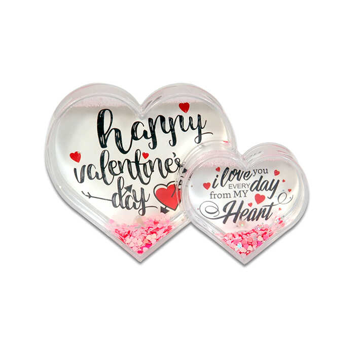 • İkili kalp şeklinde şeffaf kar küresi.
