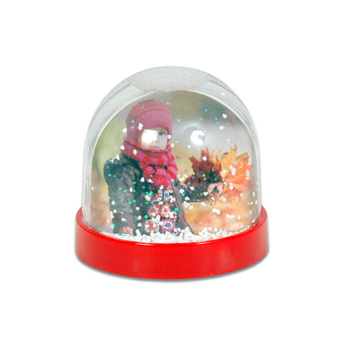 • Fanus şeklinde kırmızı renkli kaidesiyle dekoratif kar küresi.