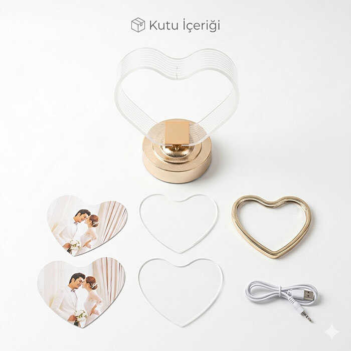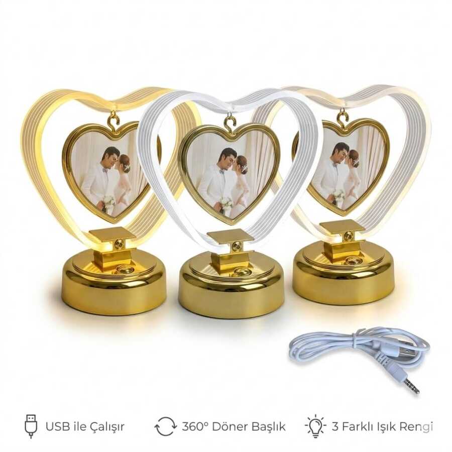 Romantik tasarımı ve askılı kalp fotoğraf alanı ile dikkat çeken LED’li kristal kalp gece lambası, 3 farklı ışık modu ve şık altın tabanı ile dekoratif ve anlamlı bir hediyedir. Sevgiliye hediye, yıl dönümü sürprizi ve Sevgililer Günü için ideal bir üründür.