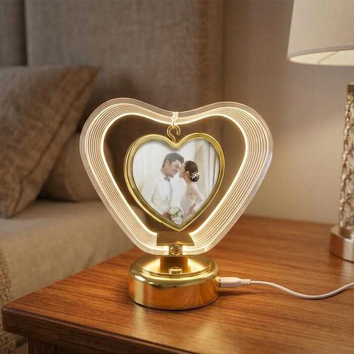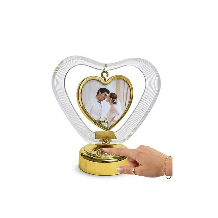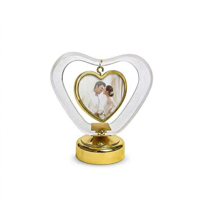 Gece Lambalı Kristal Kalp Fotoğraf Çerçevesi, iç kısmında askılı şekilde duran kalp biçimli çerçeve alanı ile klasik modellerden ayrılır. 10x10 cm ölçüsünde 2 adet fotoğraf yerleştirme alanı sayesinde çift fotoğrafları için mükemmel bir sergileme sunar.