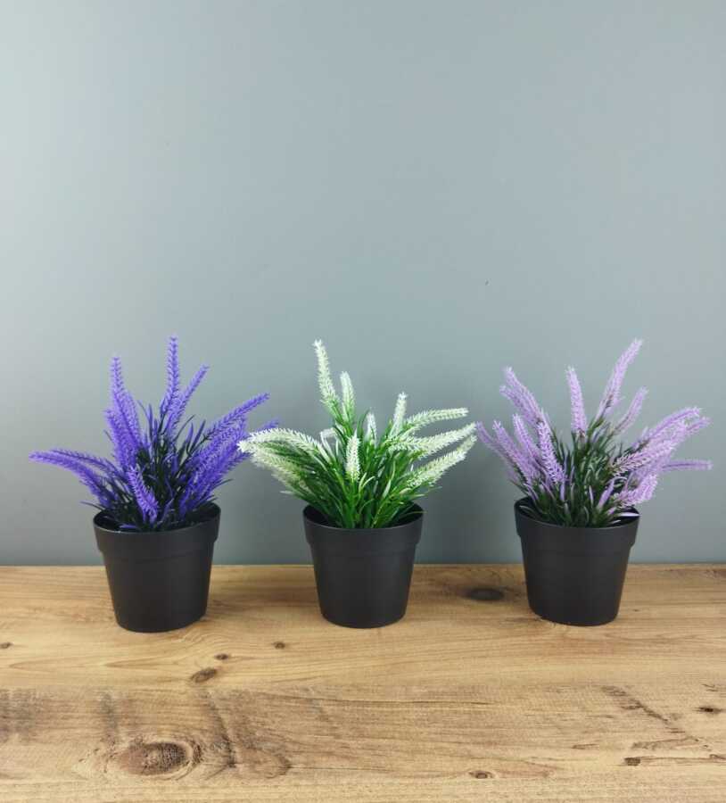Renk: Mor, beyaz, lila lavanta çiçeği, siyah saksı
