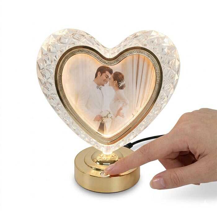 Dokunmatik 3 Renk LED Işıklı Kristal Kalp Fotoğraf Çerçevesi – USB & Pilli Gece Lambası Abajur