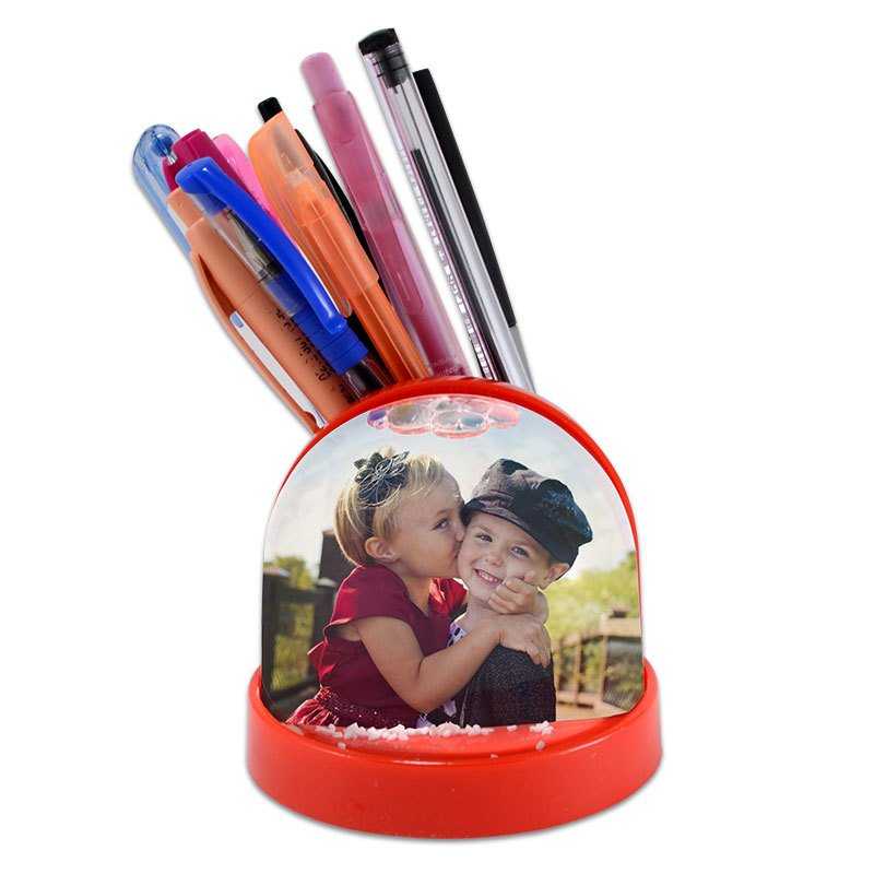 Kar küresinin arka tarafında kalemlerinizi koyarak masanızı düzenleyebileceğiniz bir alan vardır.