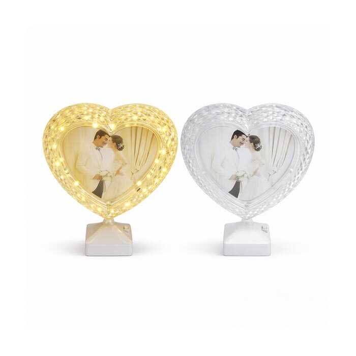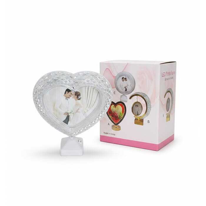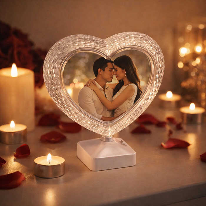 Şeffaf kristal görünümlü dış paneli ve sihirli ayna özelliğiyle öne çıkan LED’li kalp fotoğraf çerçevesi, ışık kapalıyken ayna, açıkken romantik bir gece lambasına dönüşür. 14x14 cm fotoğraf alanı ile masaüstü dekorasyonu için şık bir tercihtir.