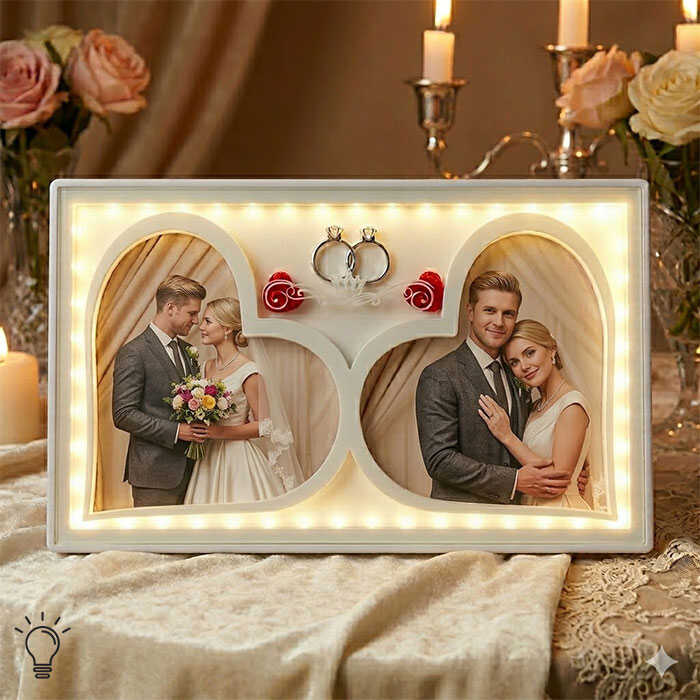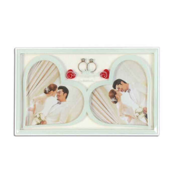 2 adet 12x13cm ebatında kalp şeklinde fotoğraf alanı vardır.