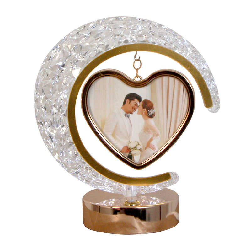 Ay şeklinde tasarlanmış olan ürünün orta kısmında fotoğraf takılabilen bir kalp asılıdır.