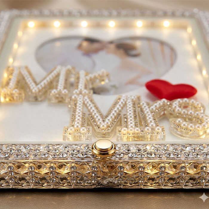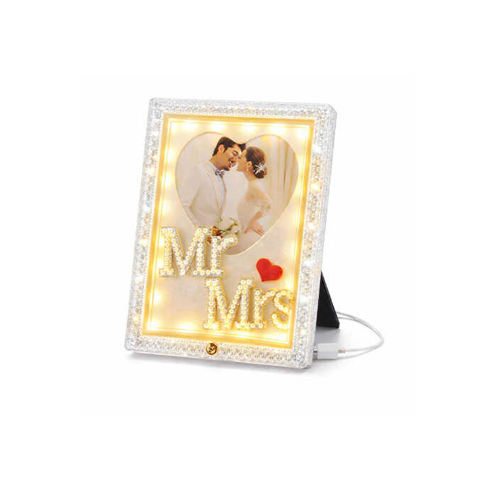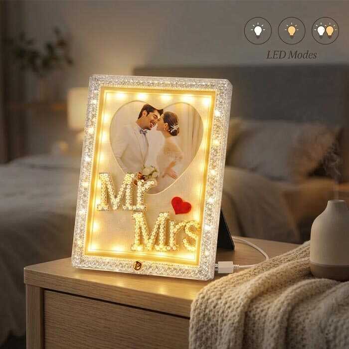 Sihirli Ayna 3 Işıklı Mr & Mrs Fotoğraf Çerçevesi, düğün, nişan ve evlilik yıldönümü gibi özel günler için tasarlanmış şık ve modern bir dekoratif üründür.