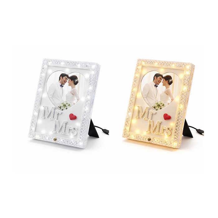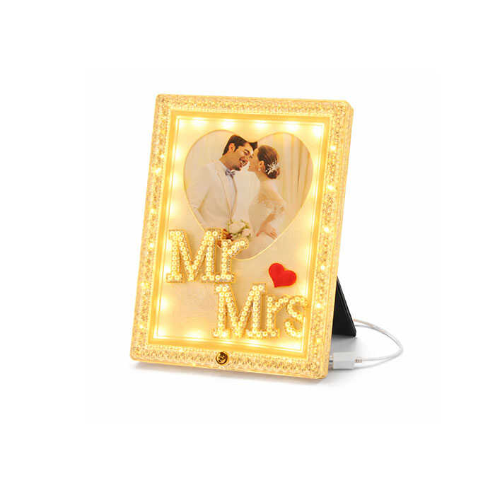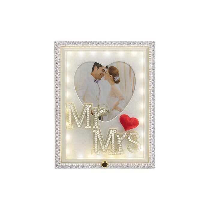 3 Renk LED’li Mr & Mrs Kalpli Fotoğraf Çerçevesi 10x15 – USB’li Masaüstü Düğün Hediyelik