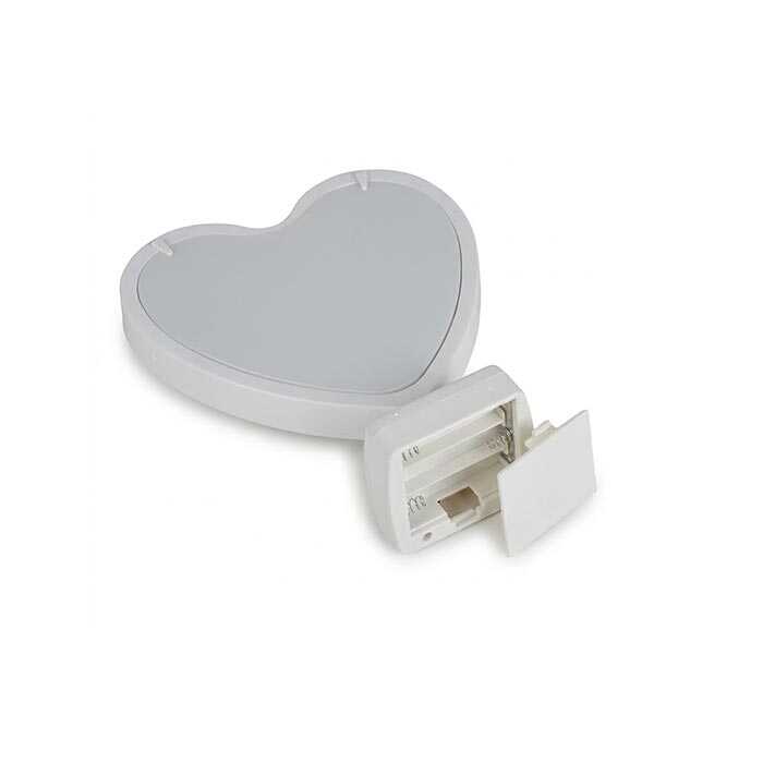 Kalp biçimli beyaz gövde, sade ve modern dekorasyonlara uyum sağlar. Masaüstü kullanım için tasarlanmıştır; komodin, yatak odası, çalışma masası veya vitrin dekorasyonu için idealdir.