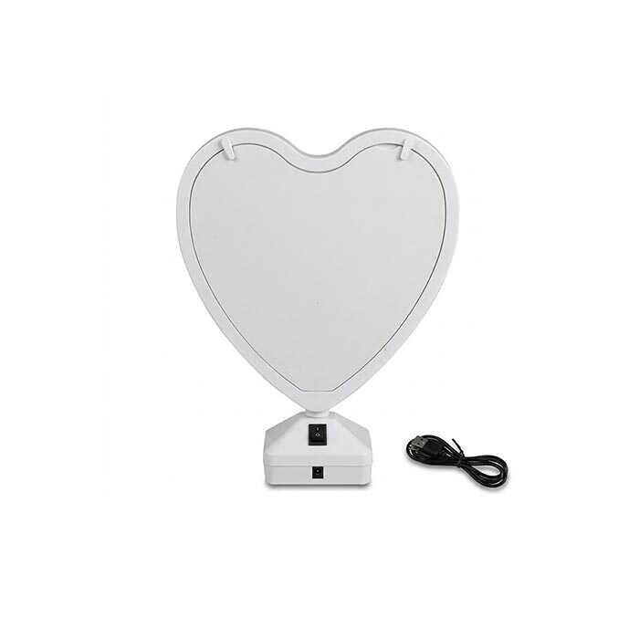 LED’li sihirli aynalı kalp fotoğraf çerçevesi, 18x18 cm geniş fotoğraf alanı ve romantik tasarımıyla hem dekoratif hem anlamlı bir hediyedir. USB veya pil ile çalışır.
