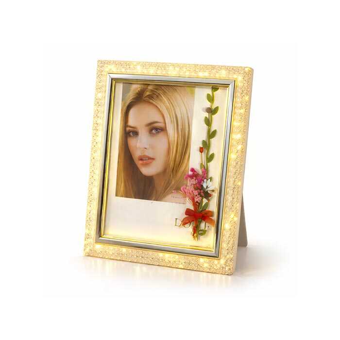 LED aydınlatmalı kristal profili, ön camındaki dekoratif ayna yazı detayı ve kuru çiçek süslemesiyle tasarlanan bu 15x21 masaüstü fotoğraf çerçevesi; romantik ve şık bir dekor ürünü olarak ev ve ofis ortamlarına ambiyans katar.