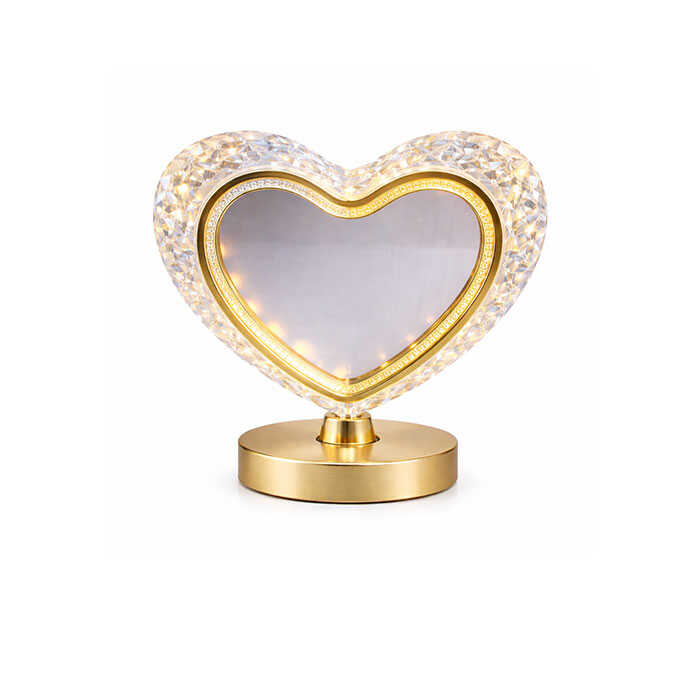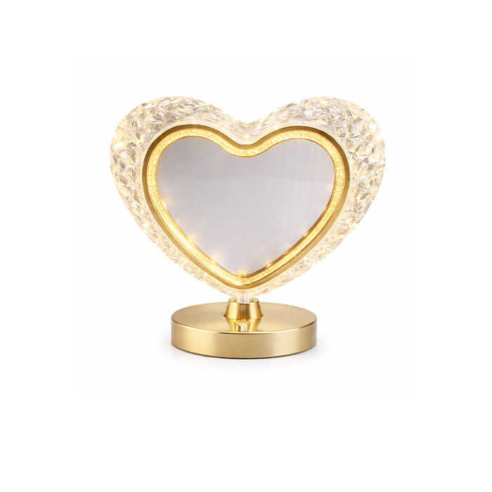 Kalp formundaki dış gövde kristal görünümlü şeffaf plastikten üretilmiştir. LED ışık kristal yüzeyde kırılarak ortama zarif bir ambiyans kazandırır. Alt kaide ve çerçeve detayları metallize altın kaplama ile tamamlanmıştır.