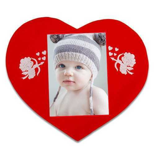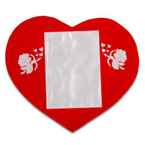Dıştan dışa yaklaşık 45cm x 40cm ebatlarında olan kalpli yastık kılıfının üzerinde baskı alanının her iki yanında birer adet melek figürü bulunmatadır.