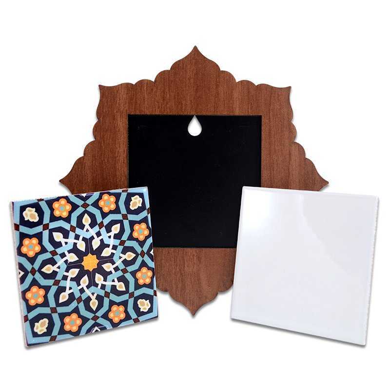 20x20 cm ahşap görünümlüMDF ürün içerisinde 10x10 cm’lik ebatındaki sublimasyon fayanlariçin uygundur. Fayans fiyata dahil değildir. 10x10 Fayans için tıklayınız.