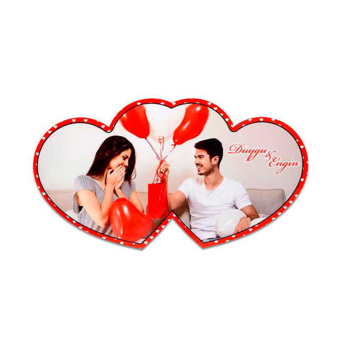 Eşit büyüklükte yan yana 2 adet kalp tasarımı oldukça romantiktir.