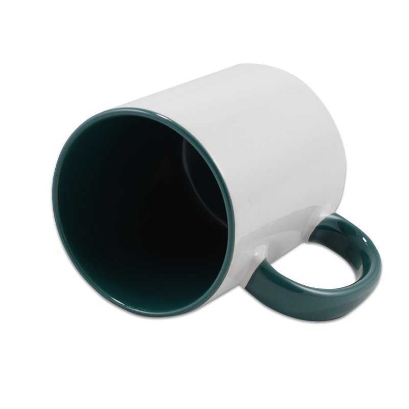 Parlak koyu yeşil renkteki içi ve sap kısmı ile klasik kupa tasarımına sahip kupa bardaklara ayrı bir cazibe kazandırmış şık bir kupa bardaktır. Renkli iç yapısı ile ister kişiye özel hediyelik baskı işlerinde kullandığınız fotoğrafın ana temasına uygun olarak veya müşterinizin sevdiği renk seçimine göre ya da promosyon baskı işlerinde firma logolarının renklerine uygun olarak seçerek kullanabileceğiniz porselen niteliğindeki kupa bardaklardır. Toptan kupa bardak imalatı, firma ya da dernek promosyonları ve kişiye özel hediyelik baskı işleri için son derece uygun ürünlerdir. Renkli yapısı size tasarımlarınızı sunarken yaratıcılığınızı ortaya çıkarma fırsatı tanıyan gösterişli kupa bardaklardır.
