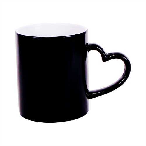 Renk değiştirebilen kalp kulplu sihirli kupa bardak üzerine süblimasyon transfer baskı sistemi ile baskı uygulanır. Uygulama yapılırken standart düz beyaz kupaya baskı yaptığınız şekilde baskı yapılır. Herhangi bir ekstra donanım ya da farklı bir tüketim malzemesine ihtiyaç duymazsınız.