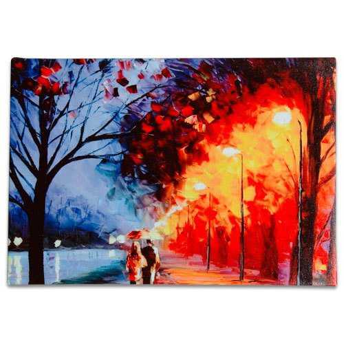 Kanvasa 1 resim basılarak kullanılabileceği gibi panoramik bir resmi 3-4 parçaya ayırarak (tamamen size ve resmin boyutlarına kalmış) 3-4 kanvasa basarak bir kompozisyonda oluşturabilirsiniz. Aynı zamanda uygulama şeklinize göre çerçevenin iki kenarı arasına yerleştirilecek bir taşıyıcı metel levha ile kanvasa bir saat motoru ekleyip duvar saatine de dönüştürebilirsiniz.