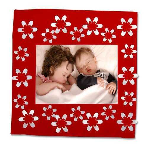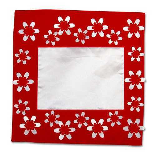 Kırmızı yüzey üzerine beyaz çiçekler uygulanmıştır.