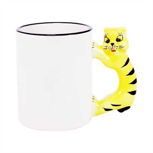 Süblimasyon baskıya uygun kedi figürlü kulp yapısına sahip süblimasyon kupa bardak baskısız şekilde ve gümüş yaldızlı kupa kutusu ile gönderilmektedir.