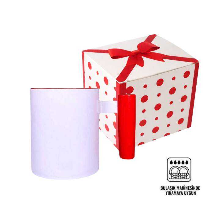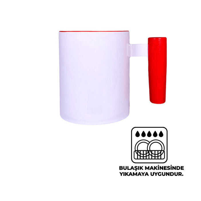 SÜBLİMASYON KIRMIZI AHŞAP SAPLI KUPA BARDAK