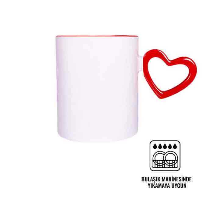 SÜBLİMASYON KIRMIZI KALPLİ VE İÇİ KIRMIZI KUPA BARDAK