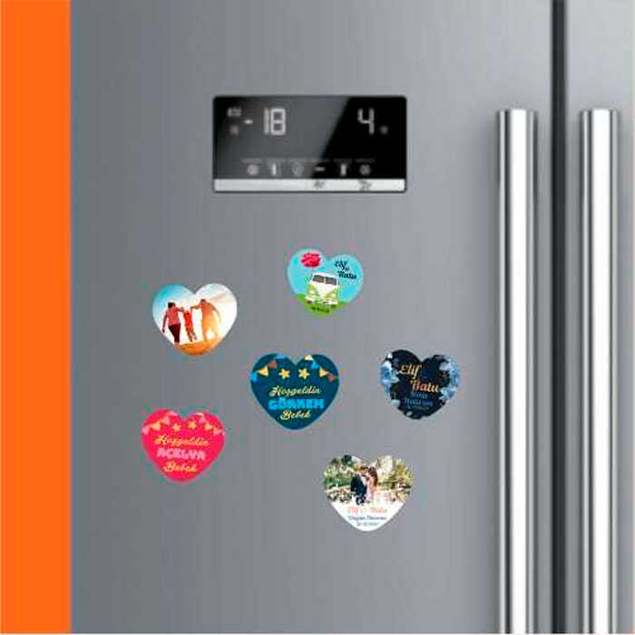 Küçük kalp şeklinde dizayn edilmiş olan ve sublimasyon baskıya uygun bu magnet ebat olarak dıştan dışa 8cm x 7cm dir. 10 lu paketler halinde satılmaktadır. Mükemmel baskı kalitesi ve magnet özelliği ile buzdolaplarınız başta olmak üzere metal yüzeylerinizin vazgeçilmez bir dekoratif ürünüdür.