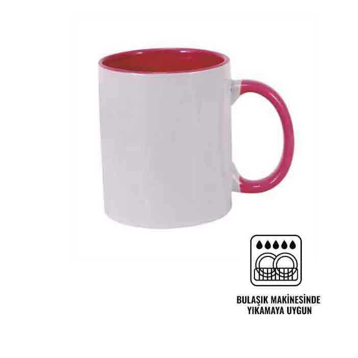 Parlak pembe renkteki içi ve sap kısmı ile klasik kupa tasarımına sahip kupa bardaklara ayrı bir cazibe kazandırmış şık bir kupa bardaktır. Renkli iç yapısı ile ister kişiye özel hediyelik baskı işlerinde kullandığınız fotoğrafın ana temasına uygun olarak veya müşterinizin sevdiği renk seçimine göre ya da promosyon baskı işlerinde firma logolarının renklerine uygun olarak seçerek kullanabileceğiniz porselen niteliğindeki kupa bardaklardır. Toptan kupa bardak imalatı, firma ya da dernek promosyonları ve kişiye özel hediyelik baskı işleri için son derece uygun ürünlerdir. Renkli yapısı size tasarımlarınızı sunarken yaratıcılığınızı ortaya çıkarma fırsatı tanıyan gösterişli kupa bardaklardır.