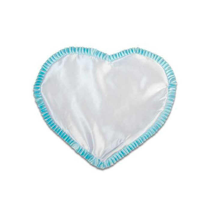 Dışta dışa yaklaşık 50cm x 45cm ebatlarında kalp şeklinde olan yastık kılıfının dış kısımları farklı renklerde fırfırlı kumaş ile çevrelenmiştir.