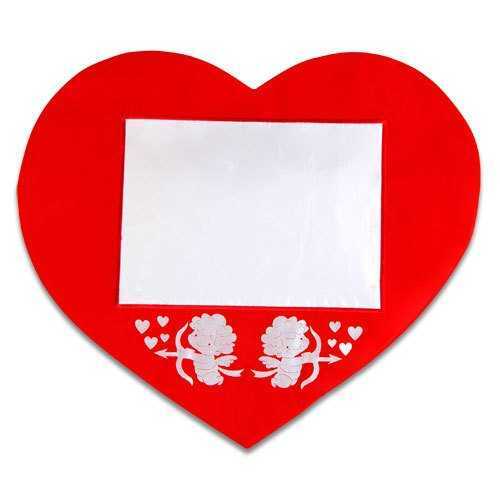 Dıştan dışa yaklaşık 45cm x 40cm ebatlarında olan kalpli yastık kılıfının üzerinde baskı alanının altında 2 adet melek figürü bulunmatadır.